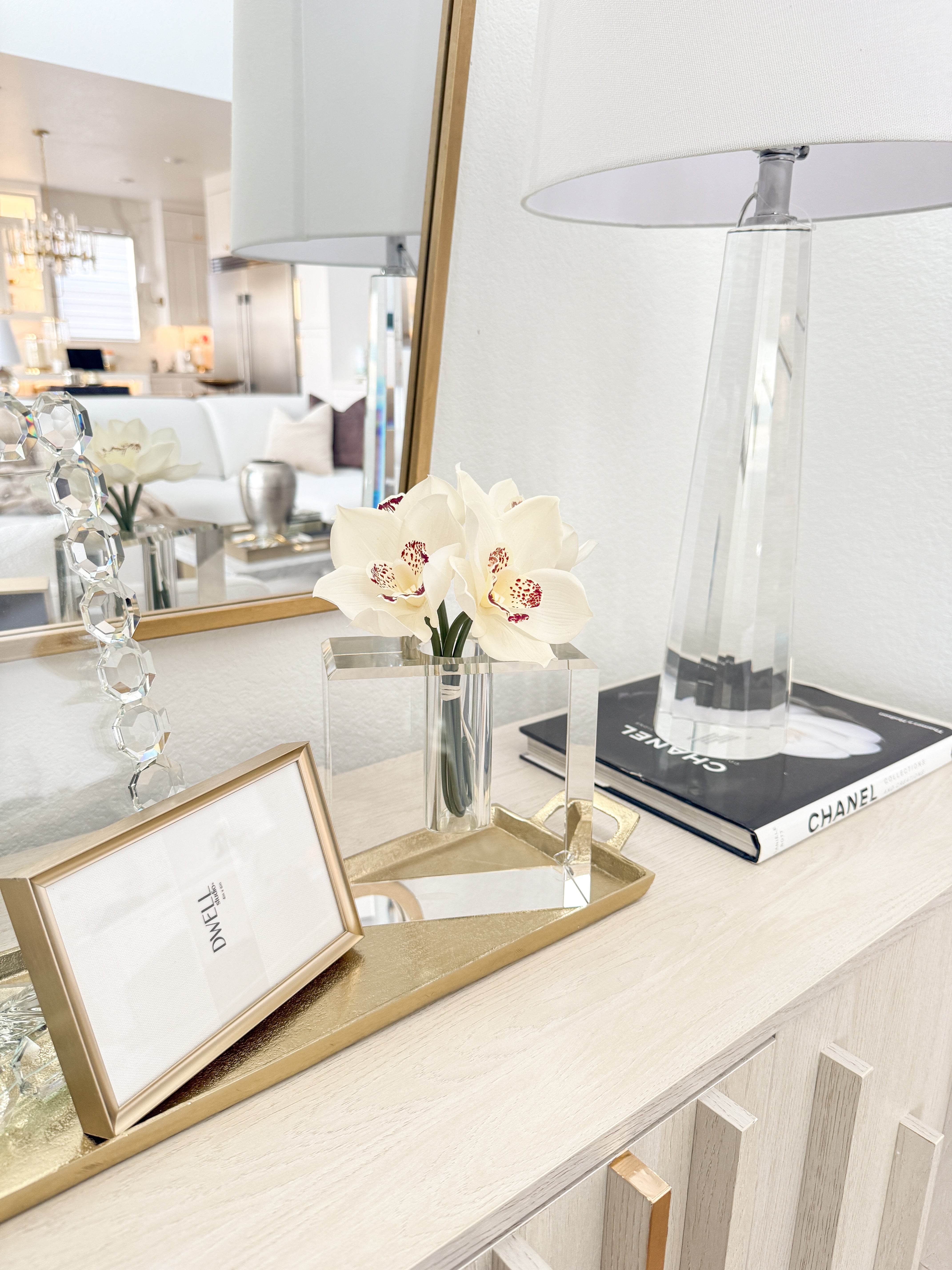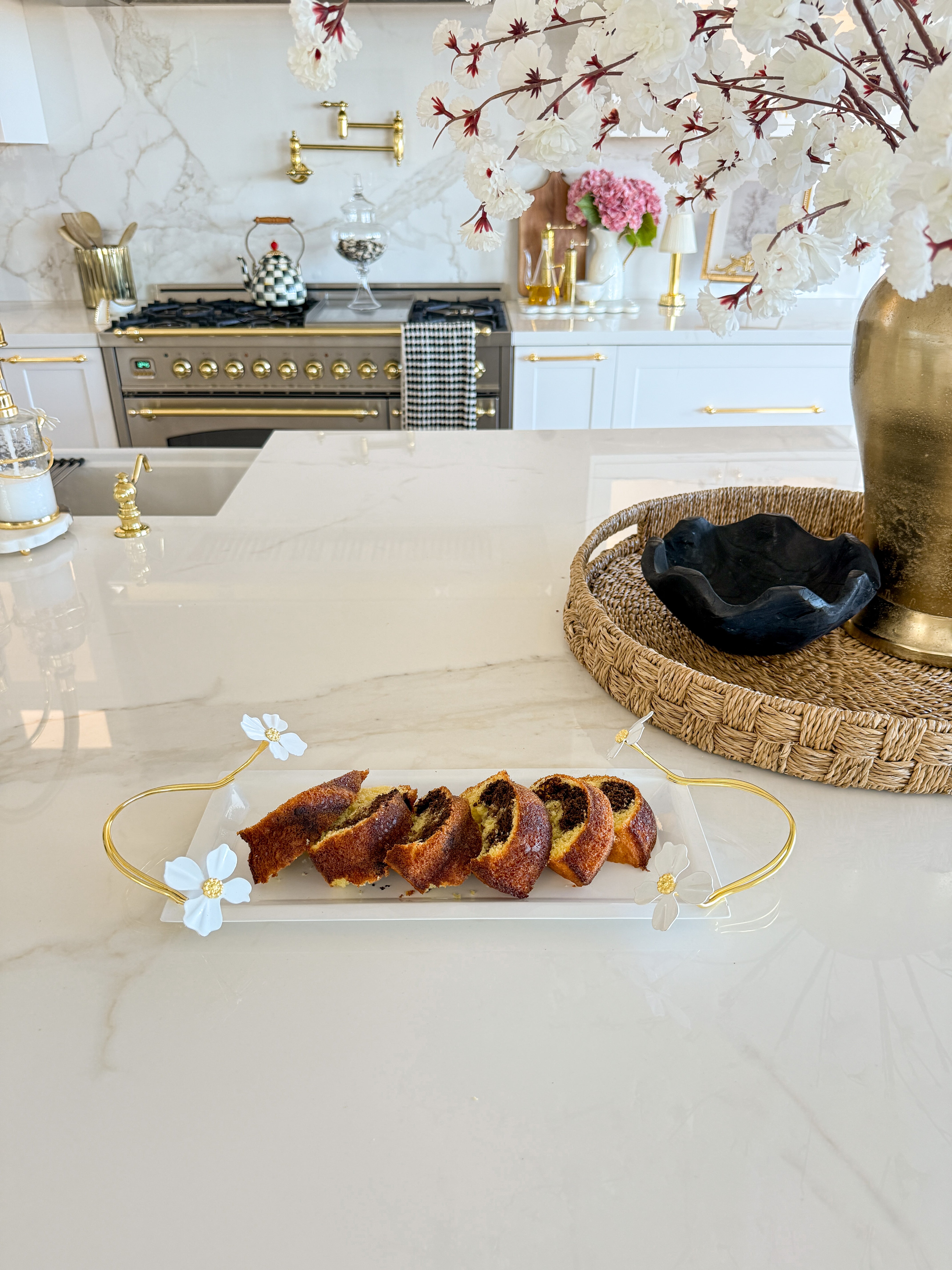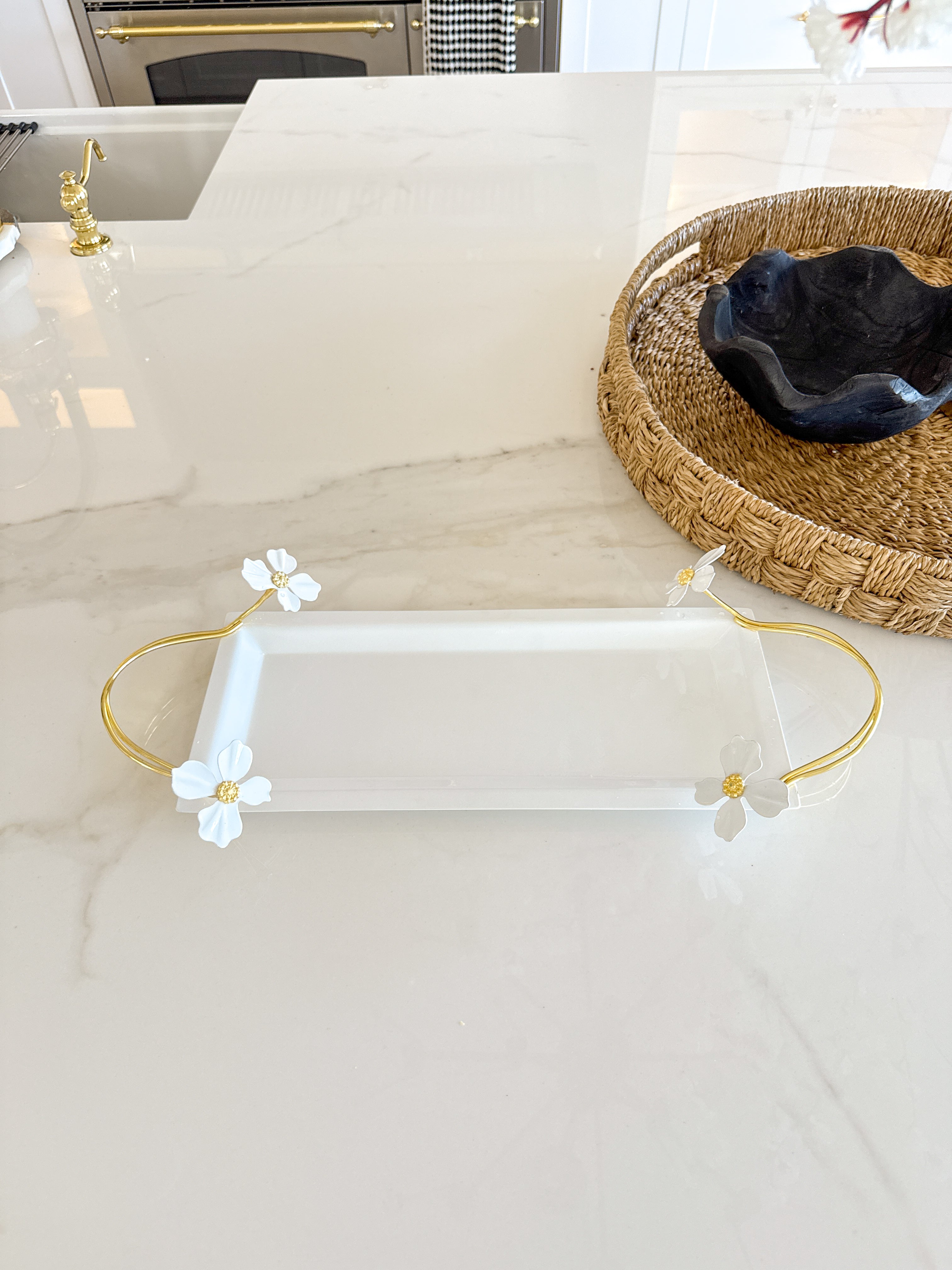 White and Gold Jasmine Flower Serving Tray