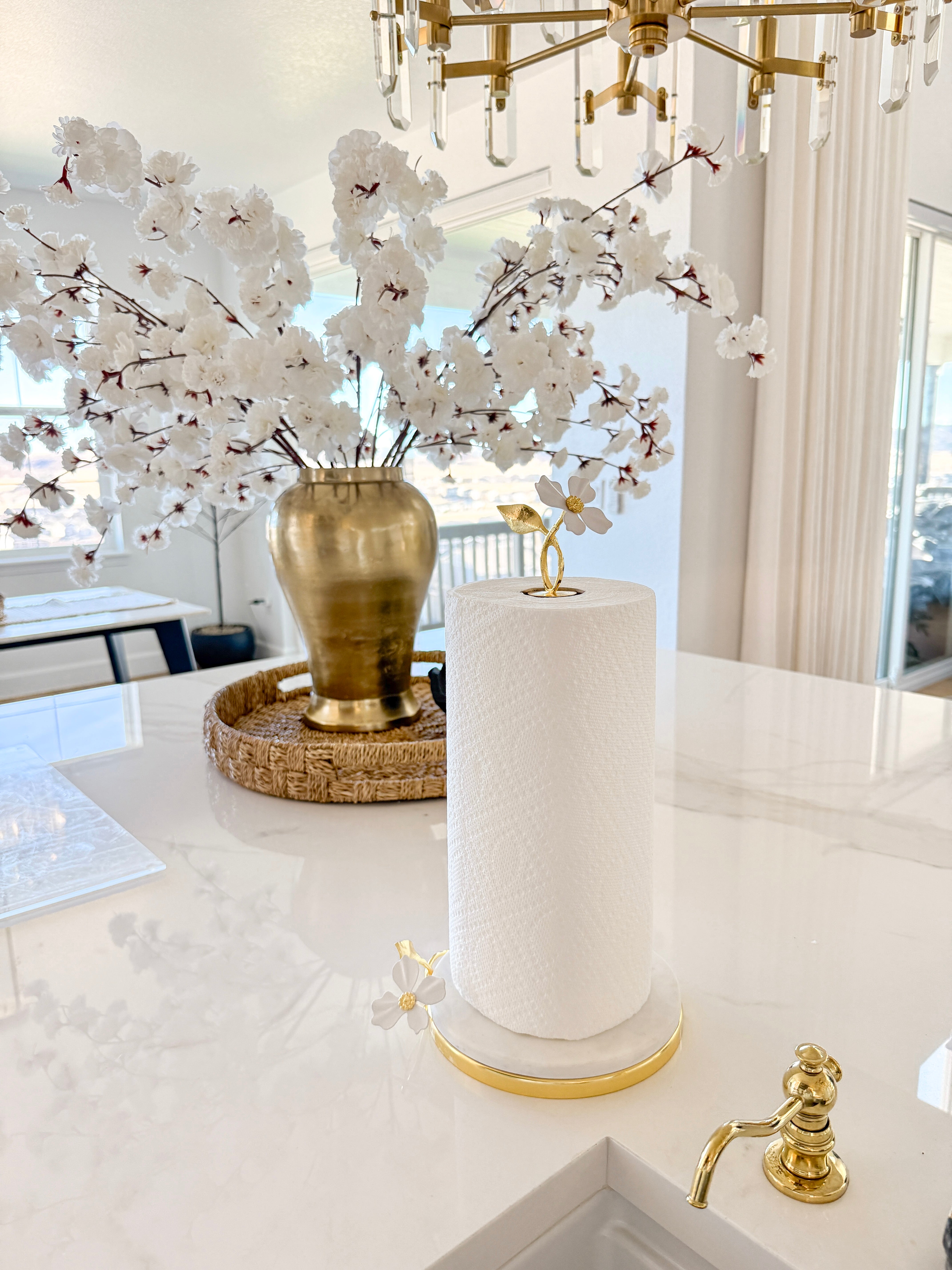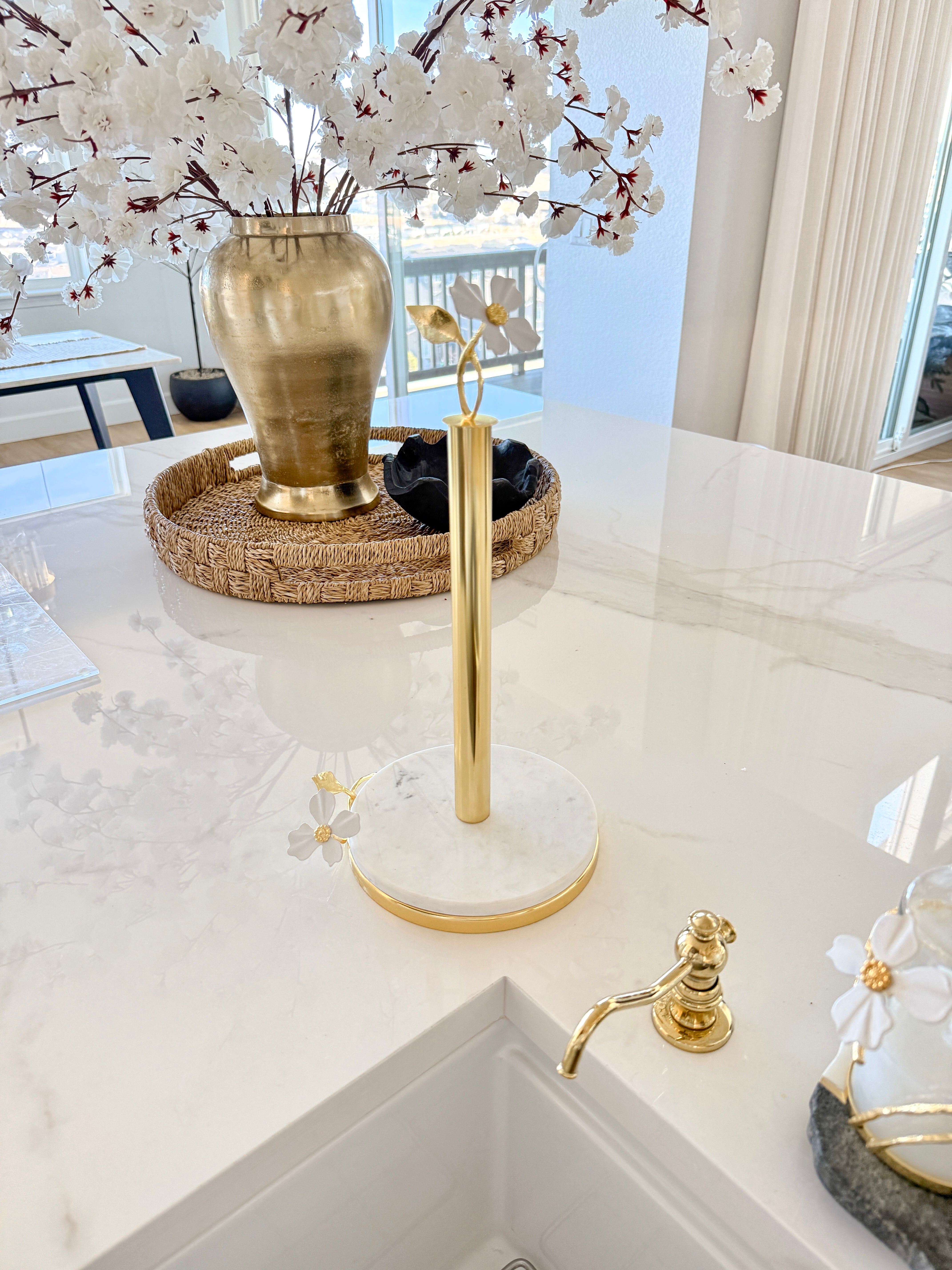 Gold with White Jasmine Flower Marble Paper Towel Holder