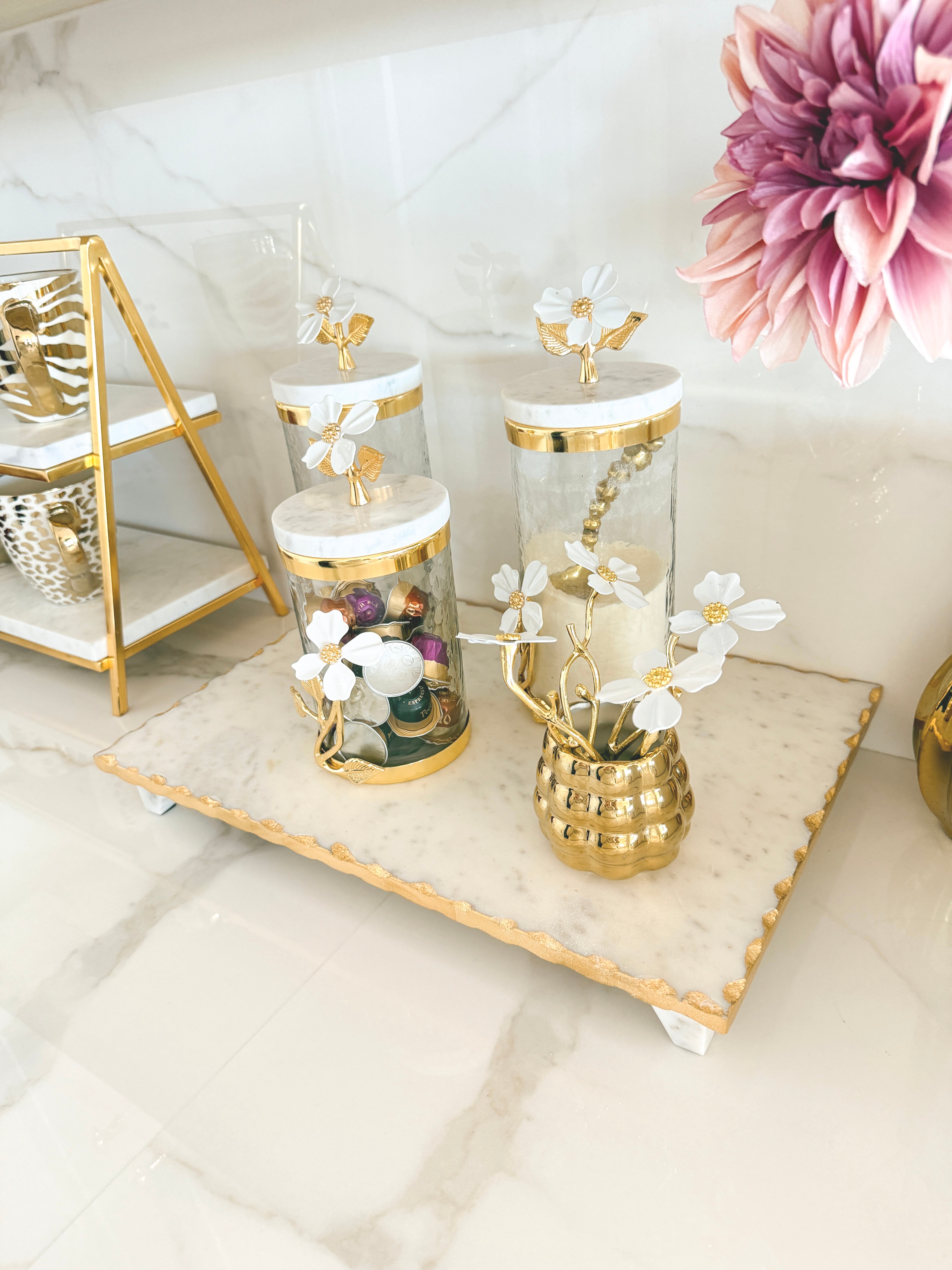 White Jasmine Flower Gold Canister