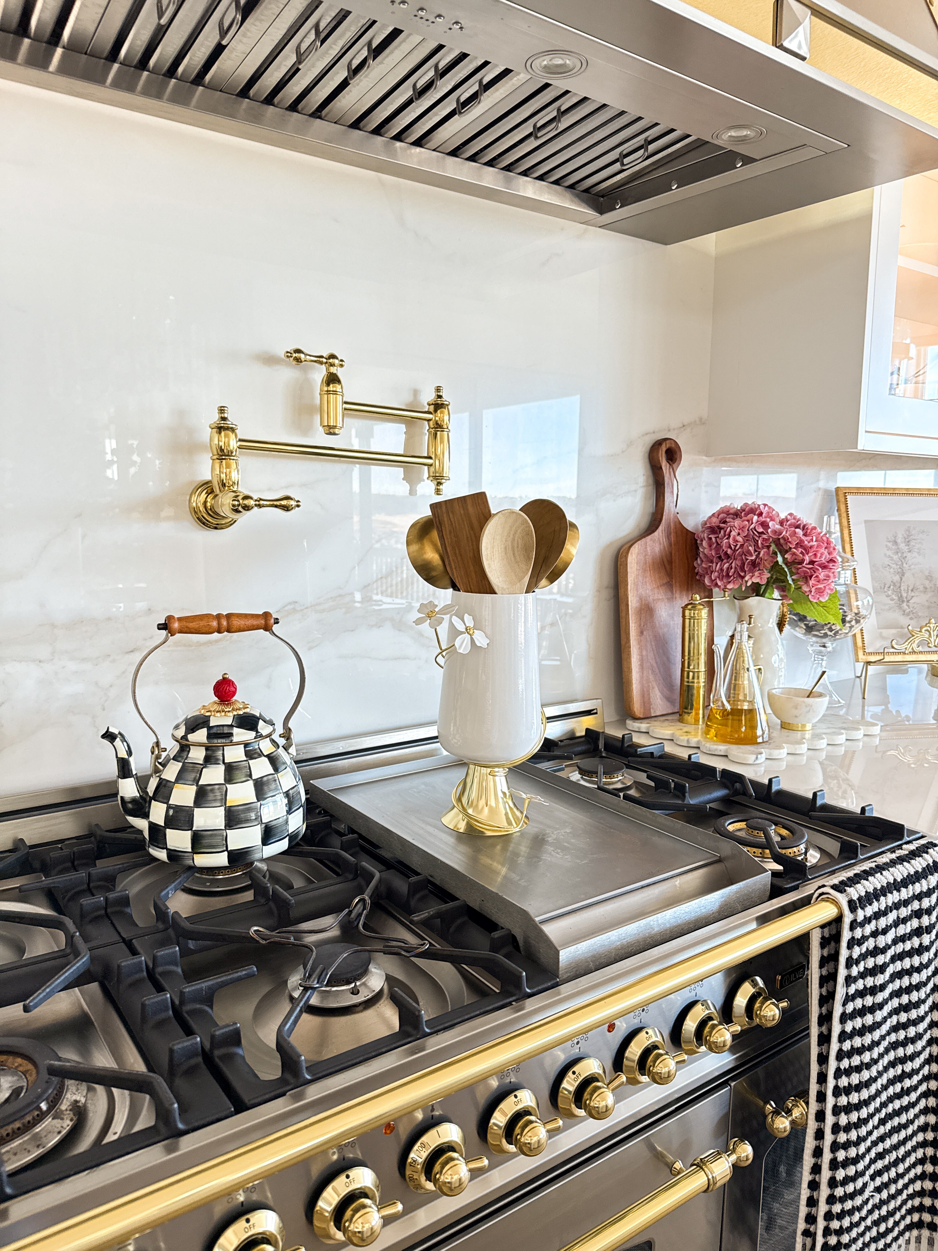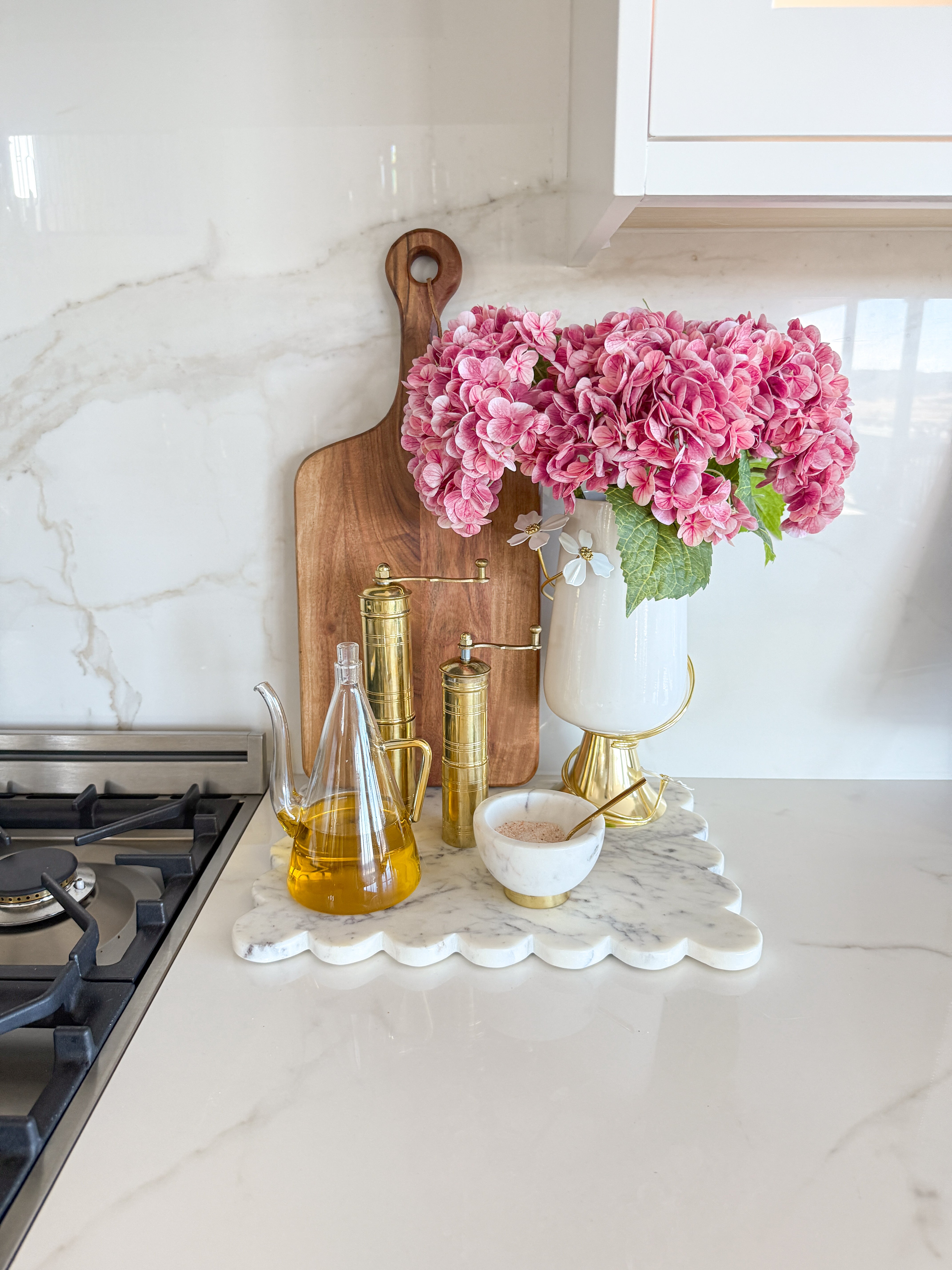 Gold with White Jasmine Flower Kitchen Utensil Holder