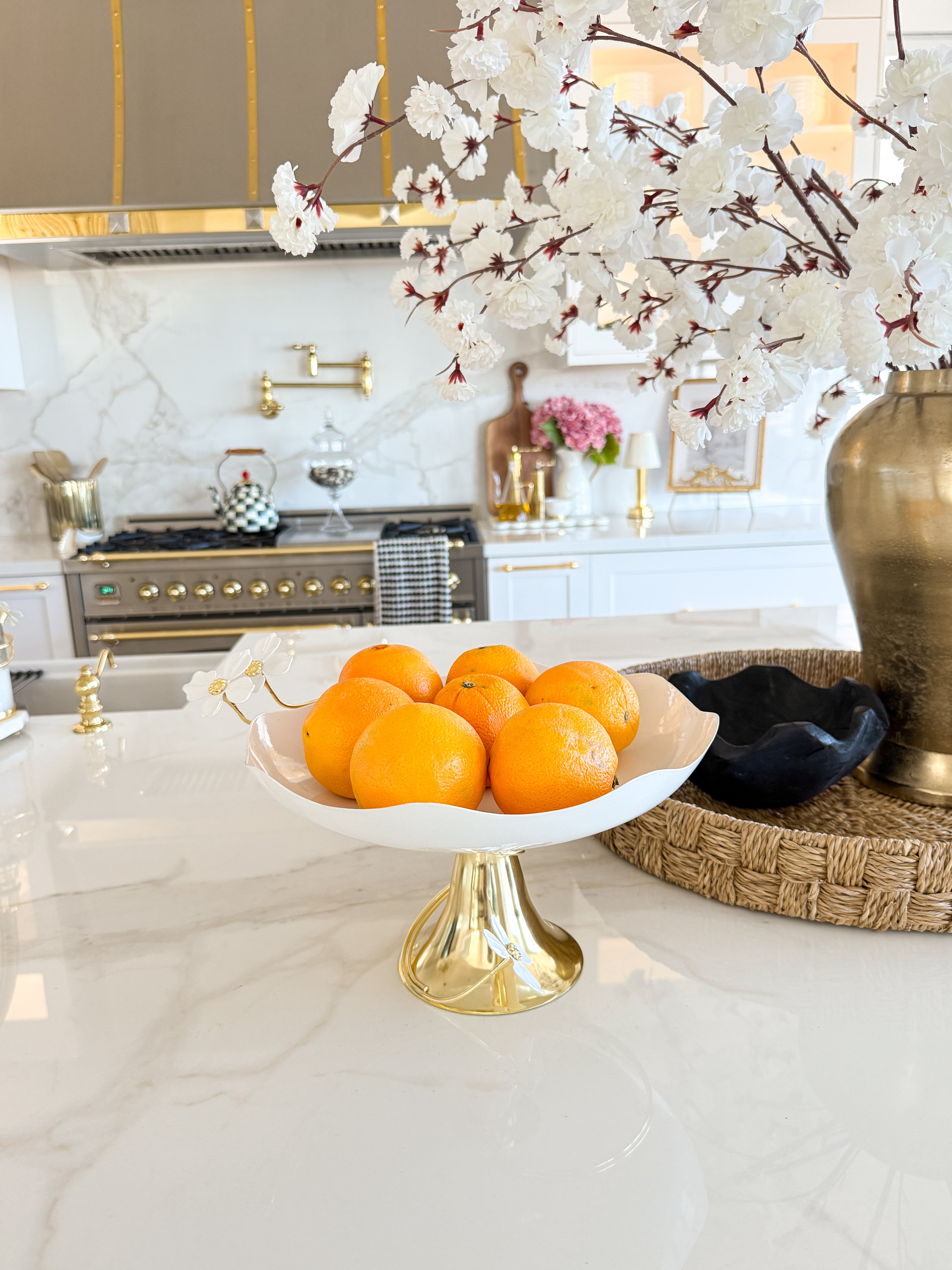 White and Gold Footed Fruit Bowl