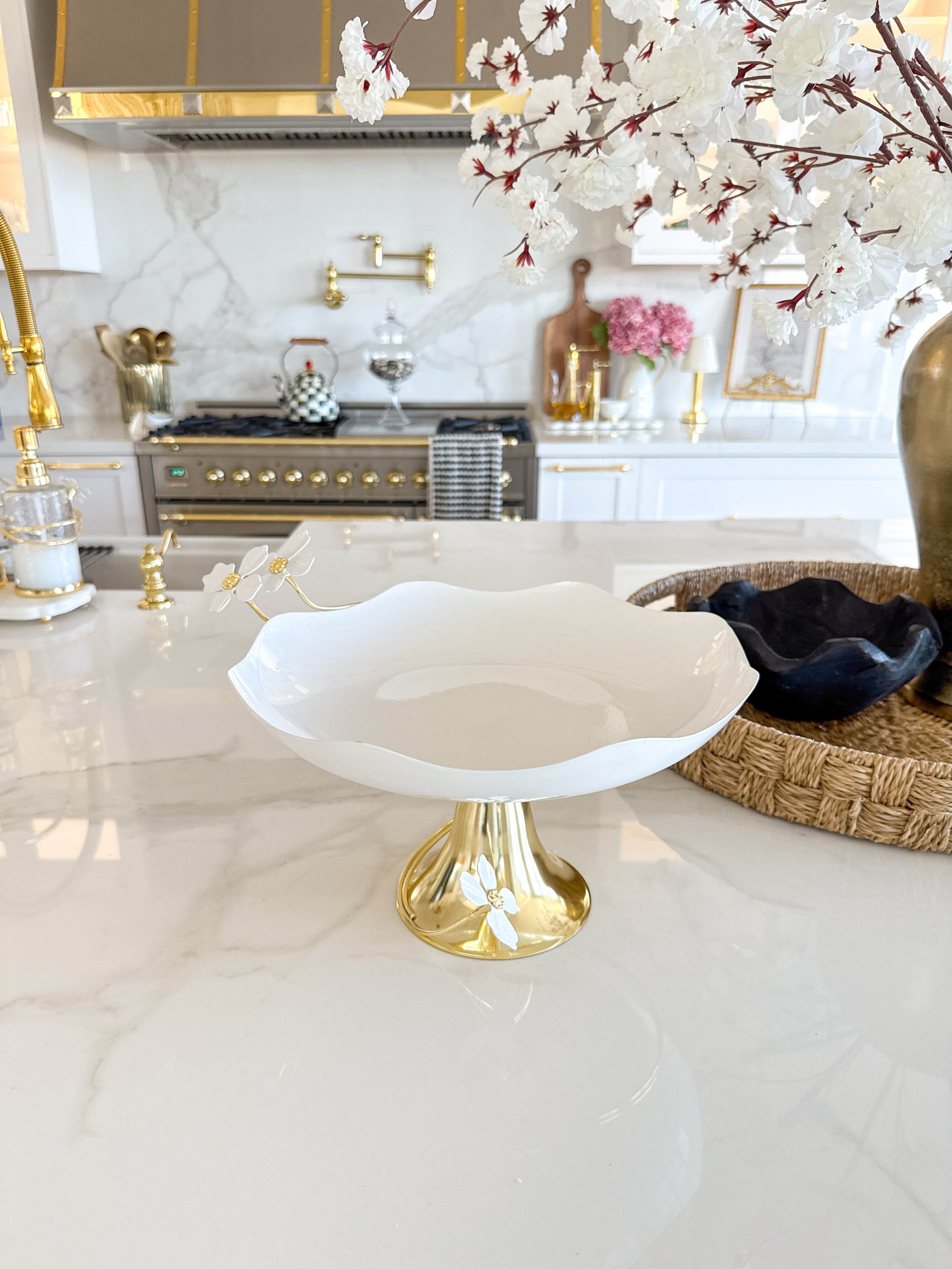 Gold with White Jasmine Flower Footed Bowl