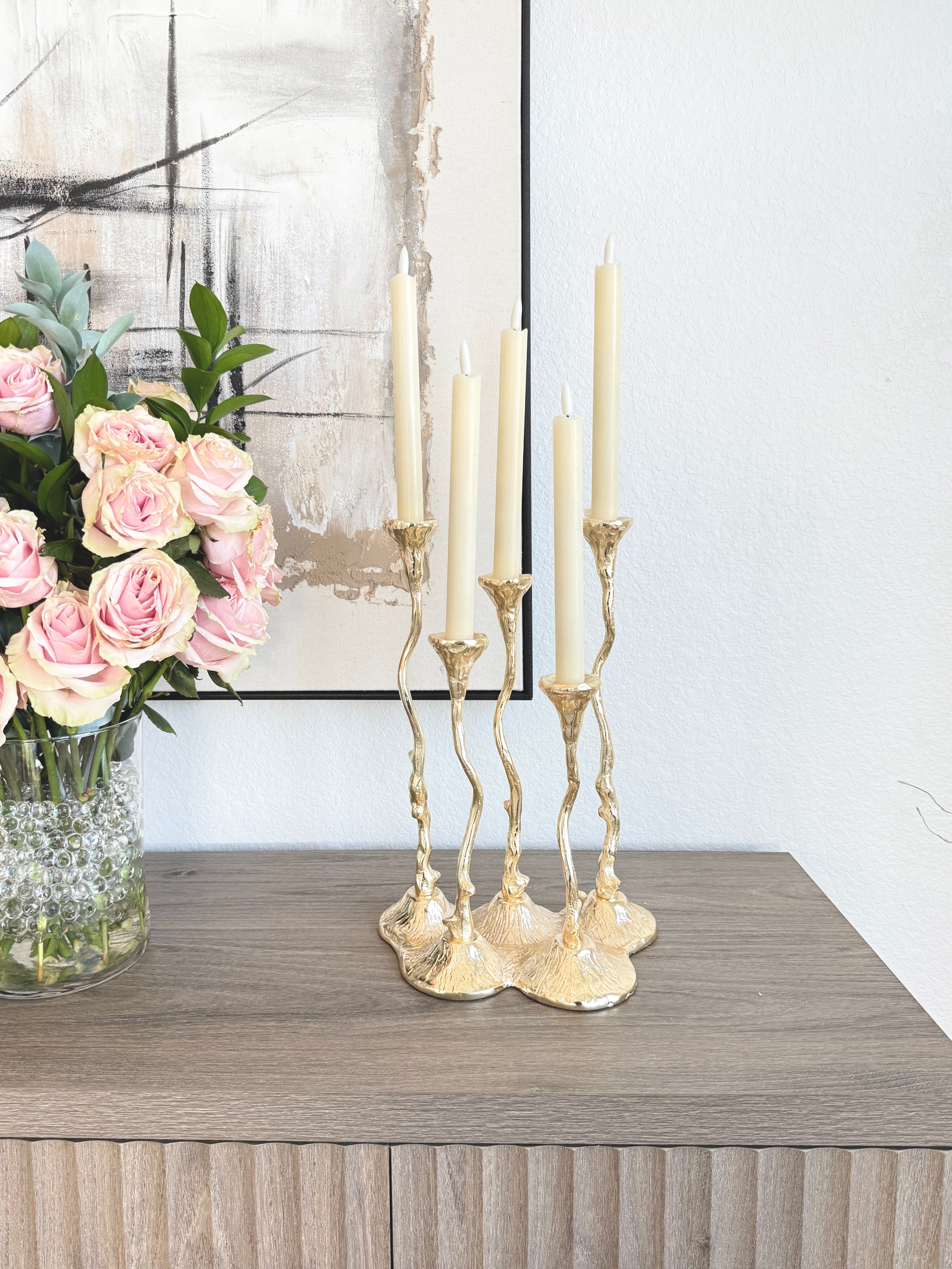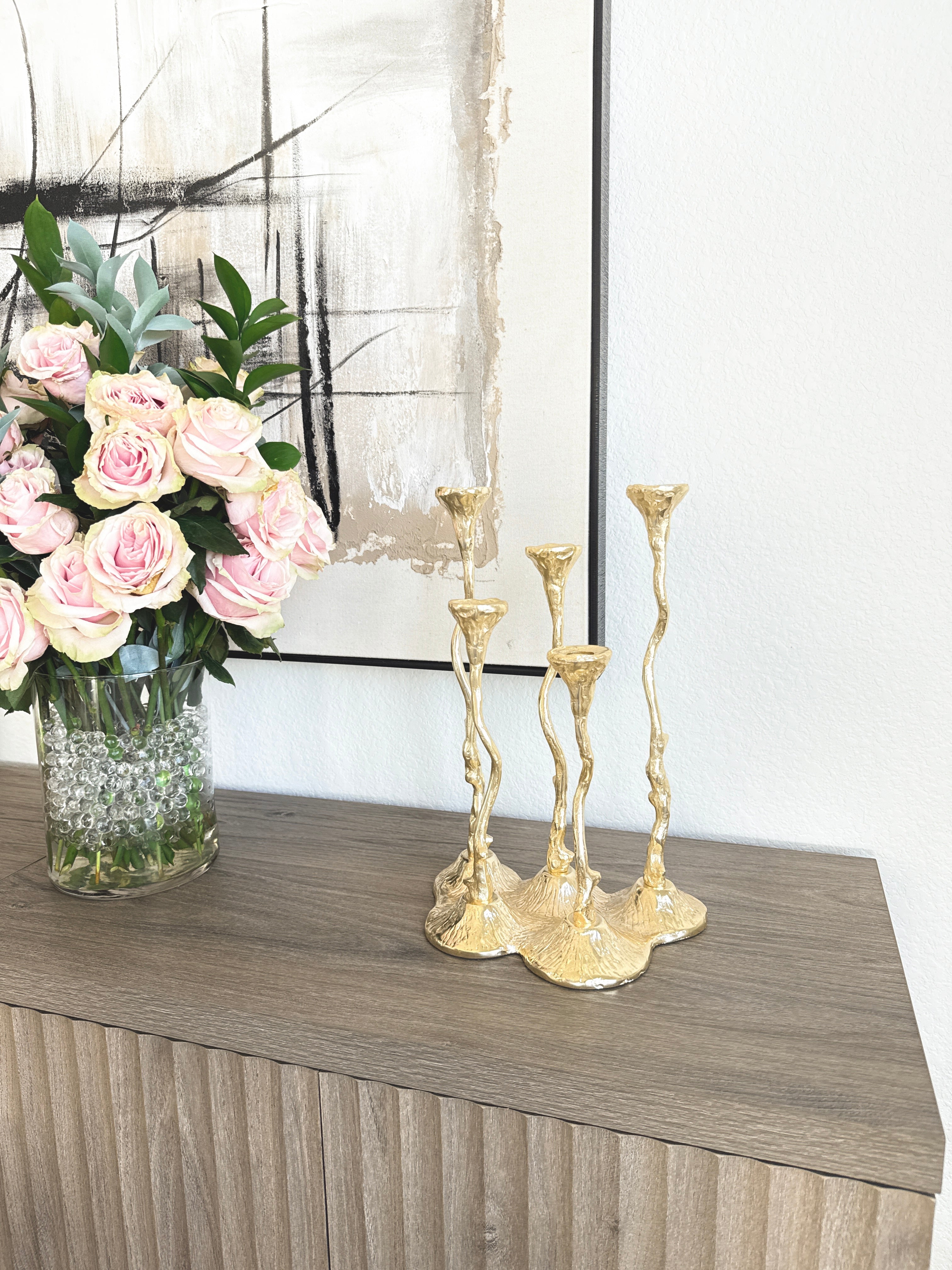 Gold Hammered Taper Candle Holder Cluster