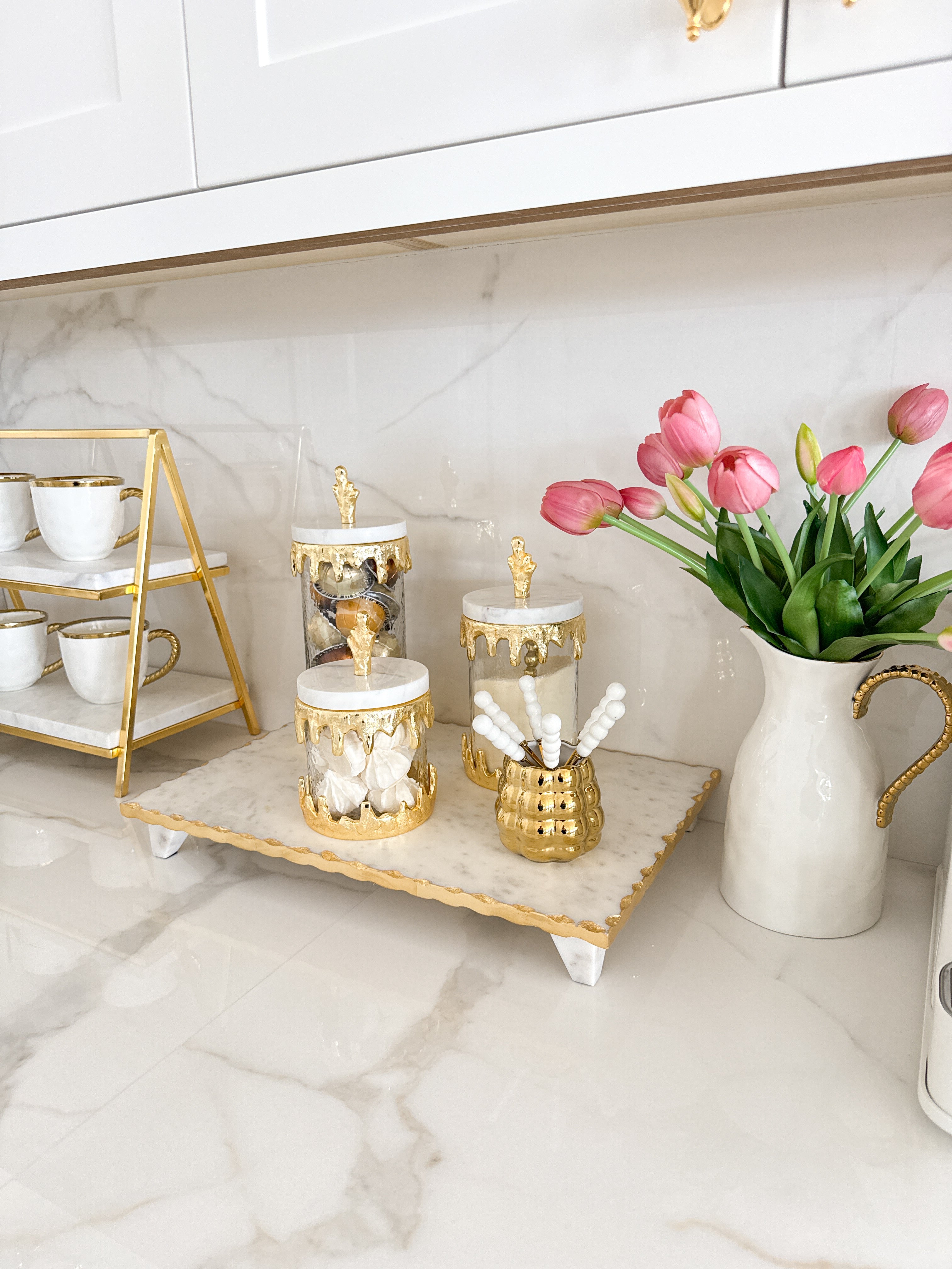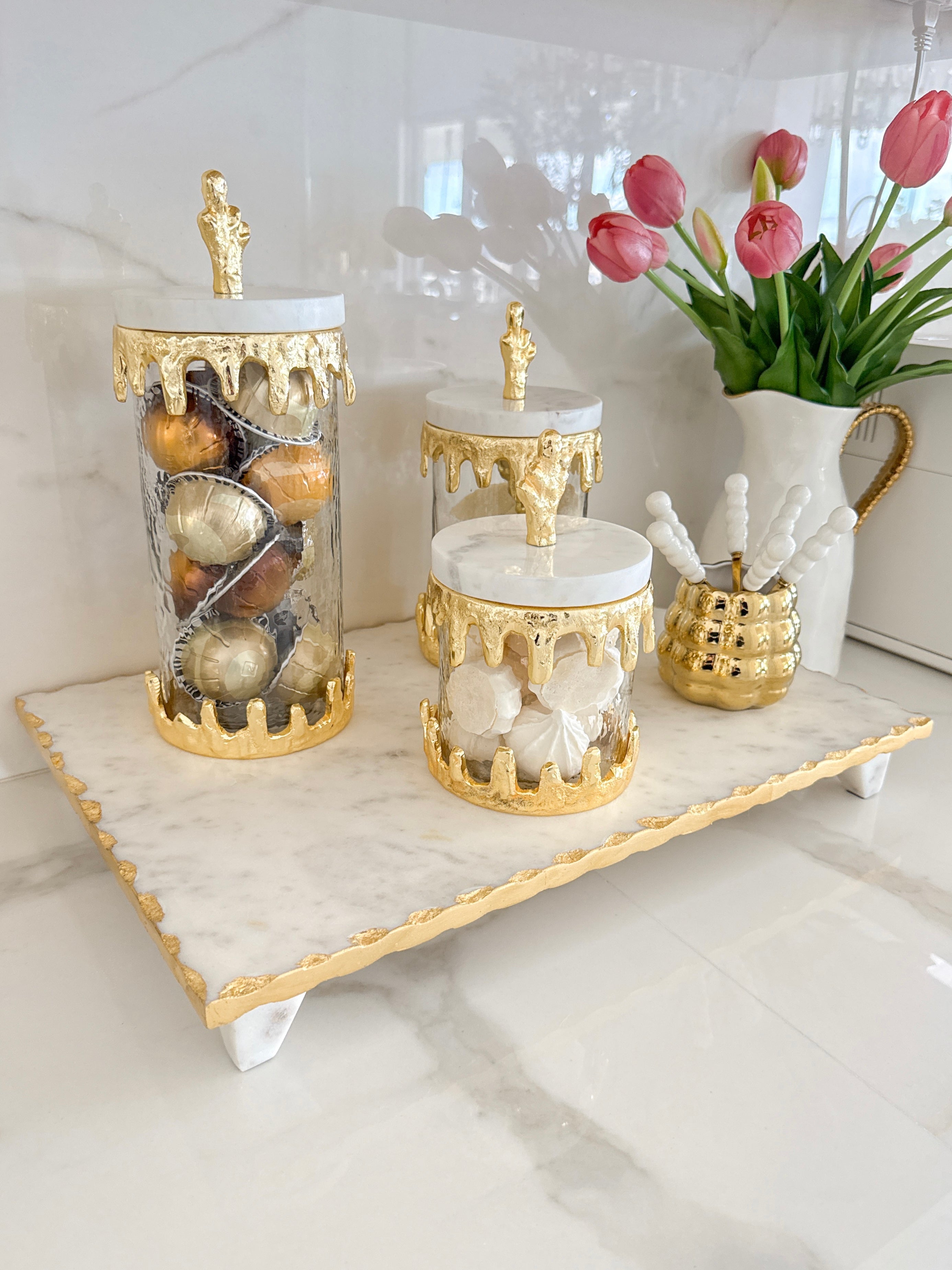 Gold Jeweled Footed Leaf Canister with Crystal Knob (Set of 3)