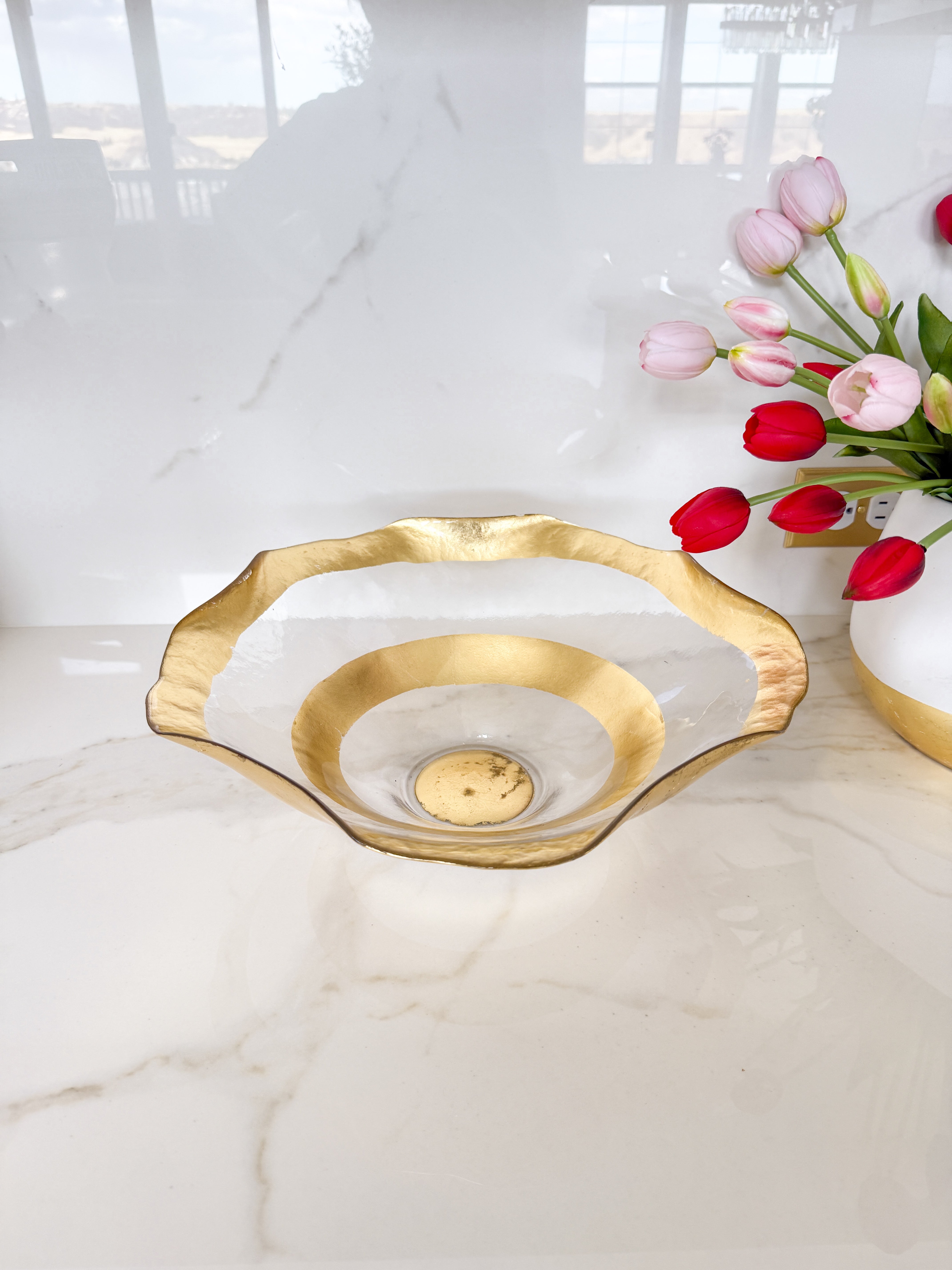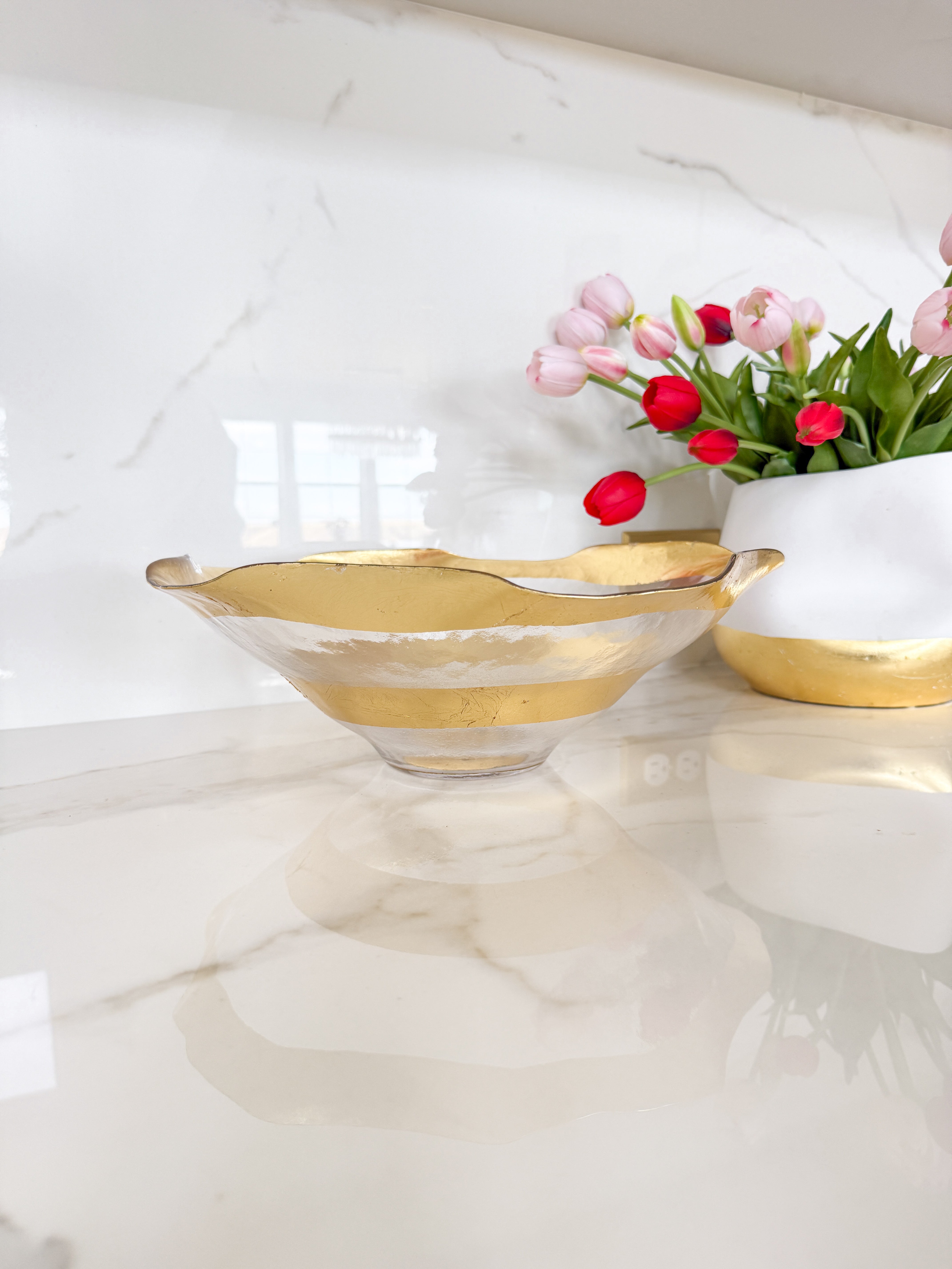 Gold Leaf Utensil Holder with Hammered Glass Inserts