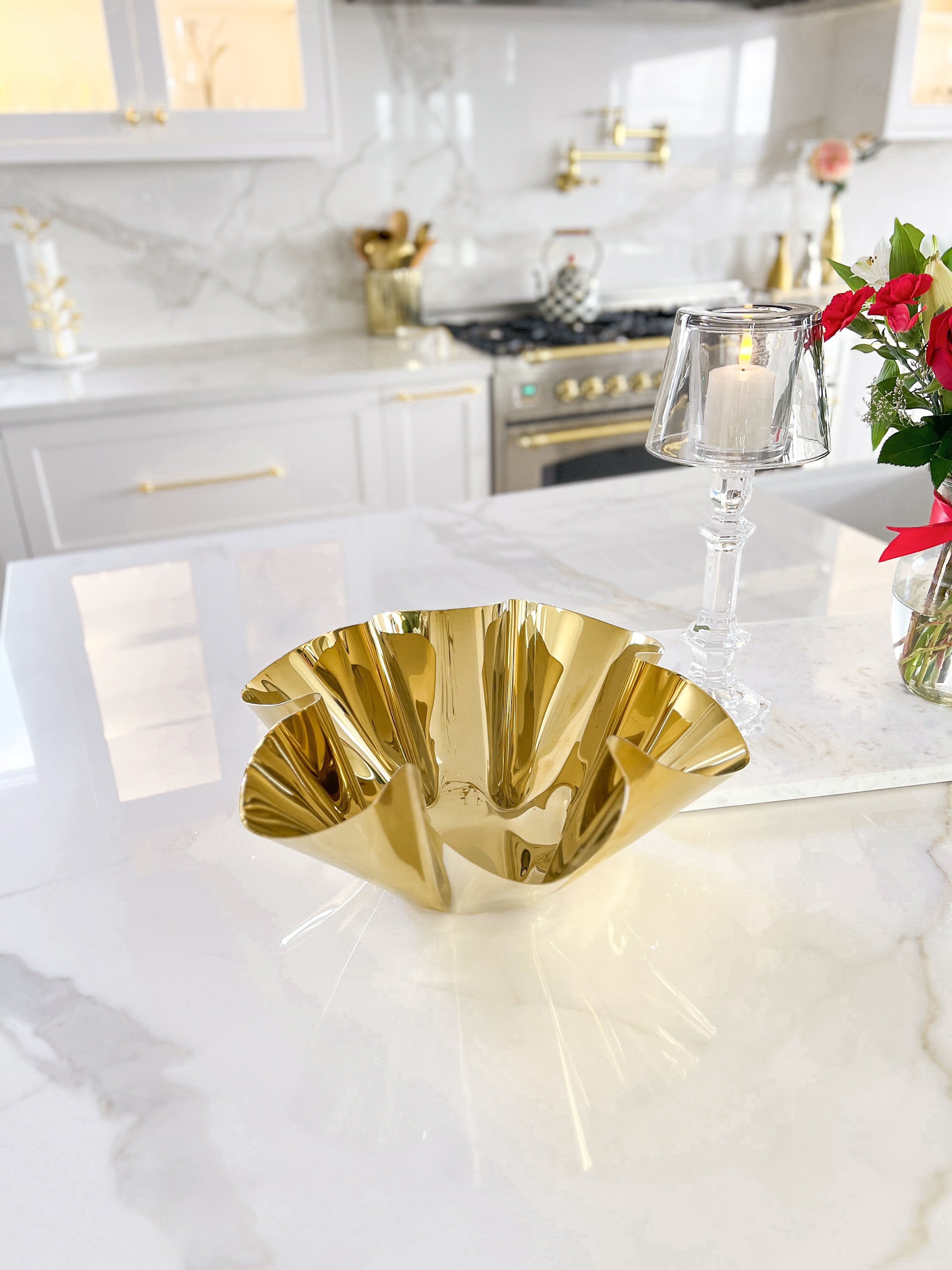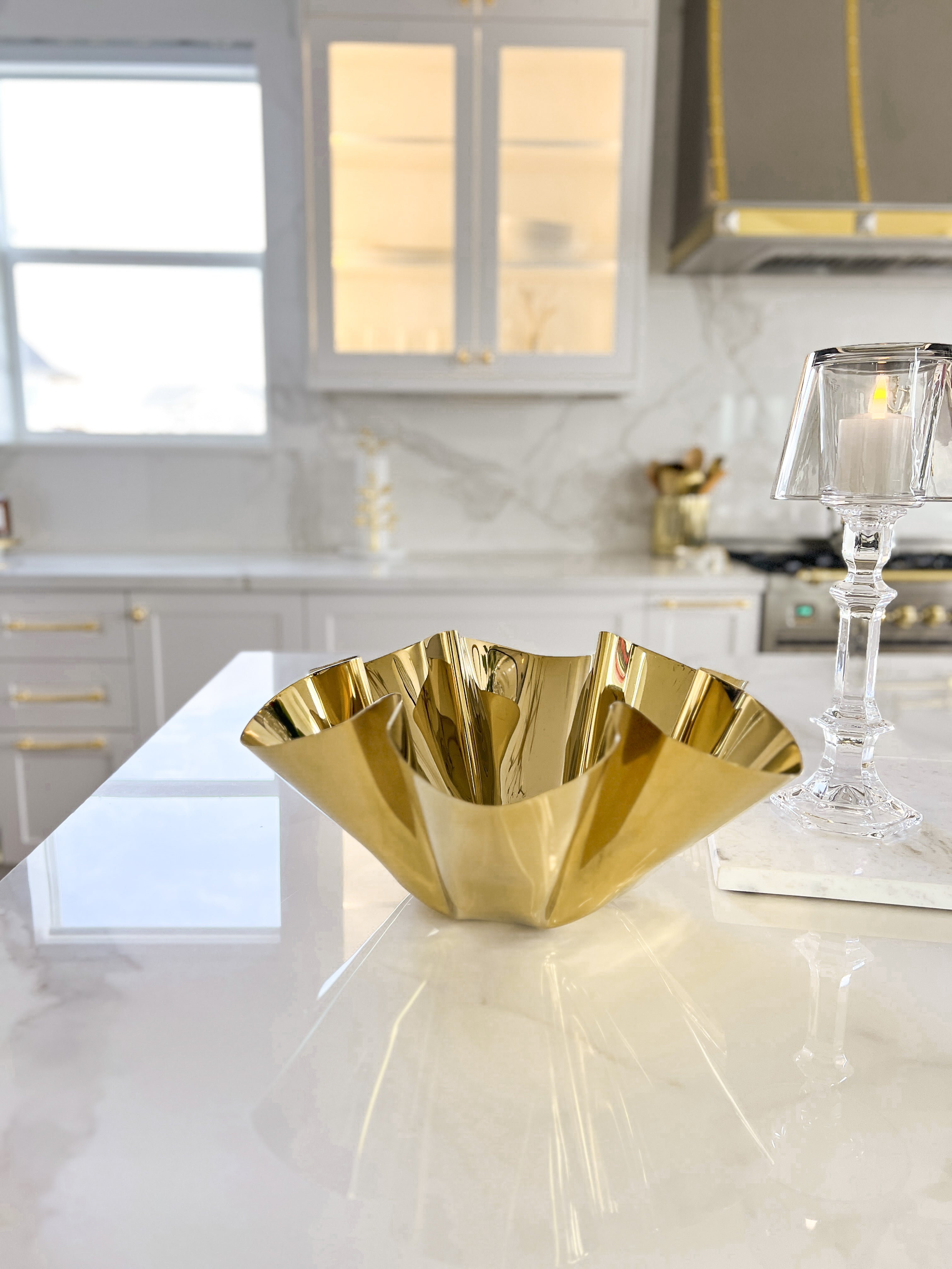 Gold Ripple Edge Marble Footed Tray