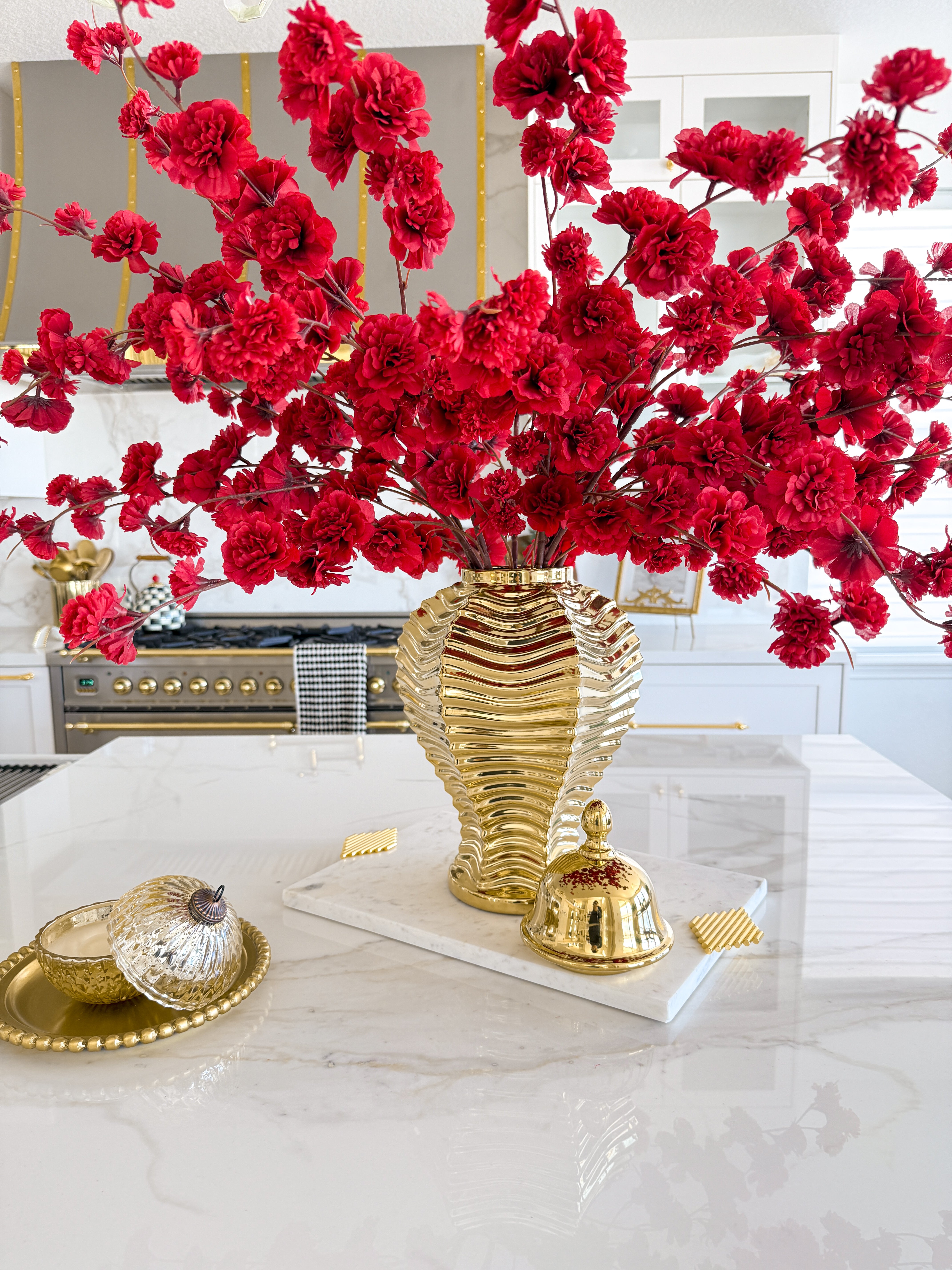 Gold Rose Flower Canisters (Set of 3)