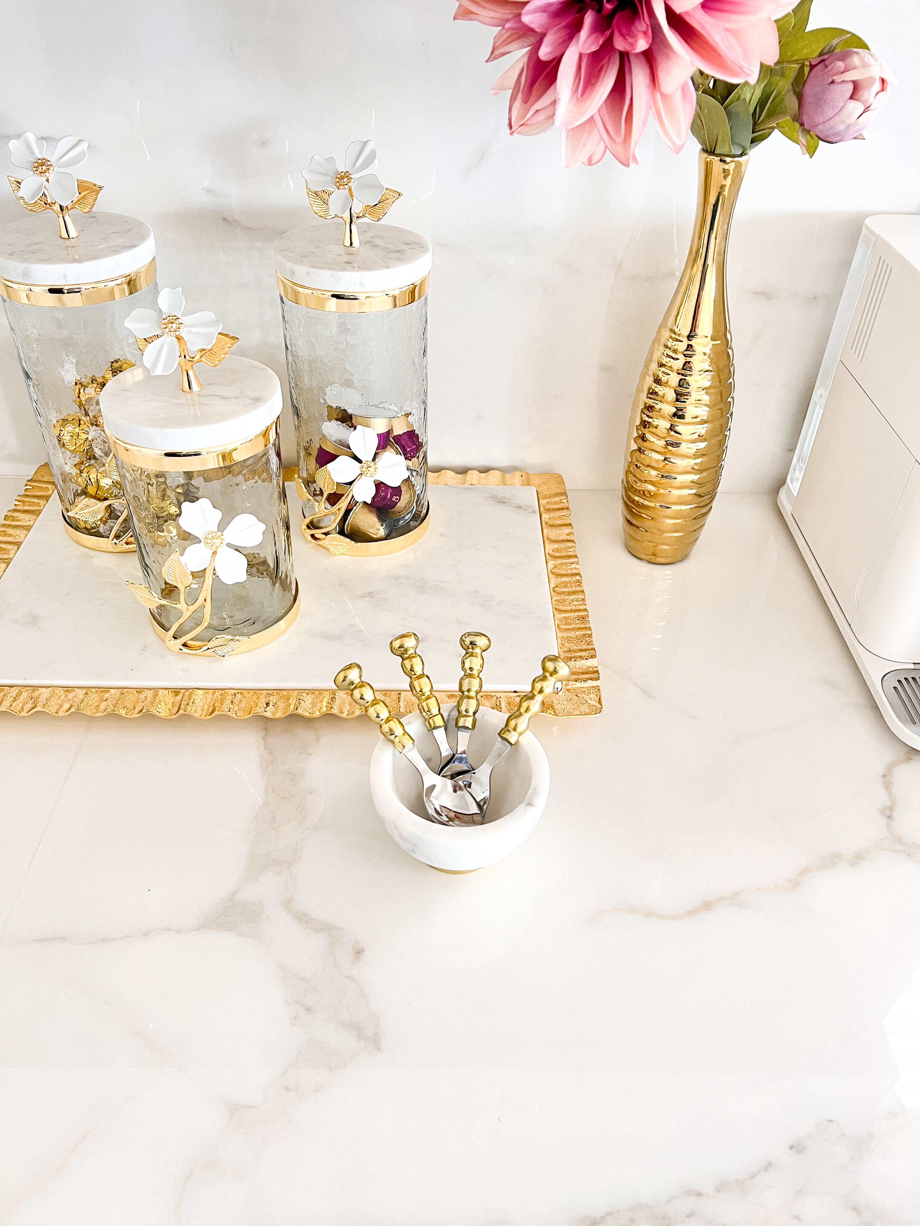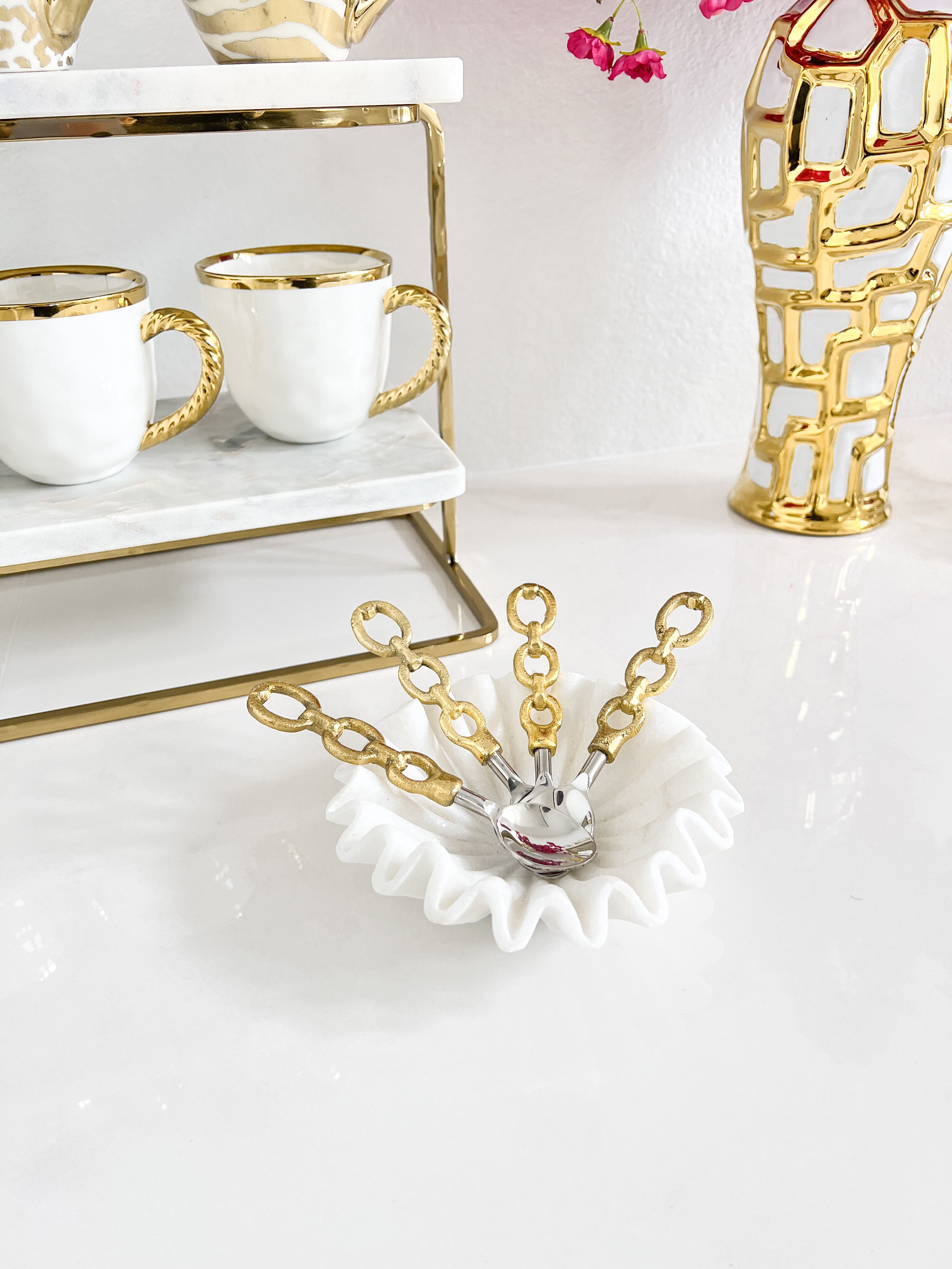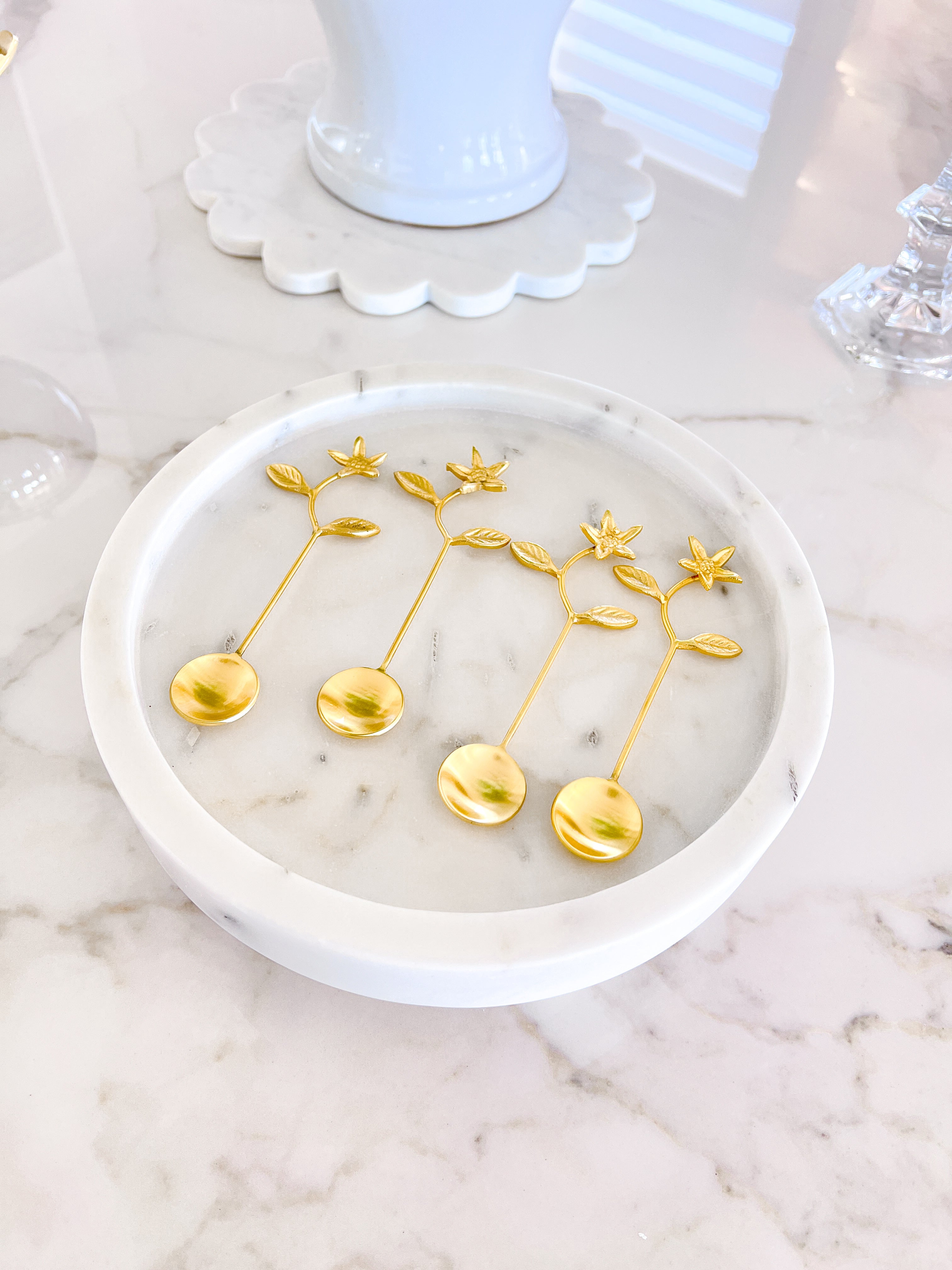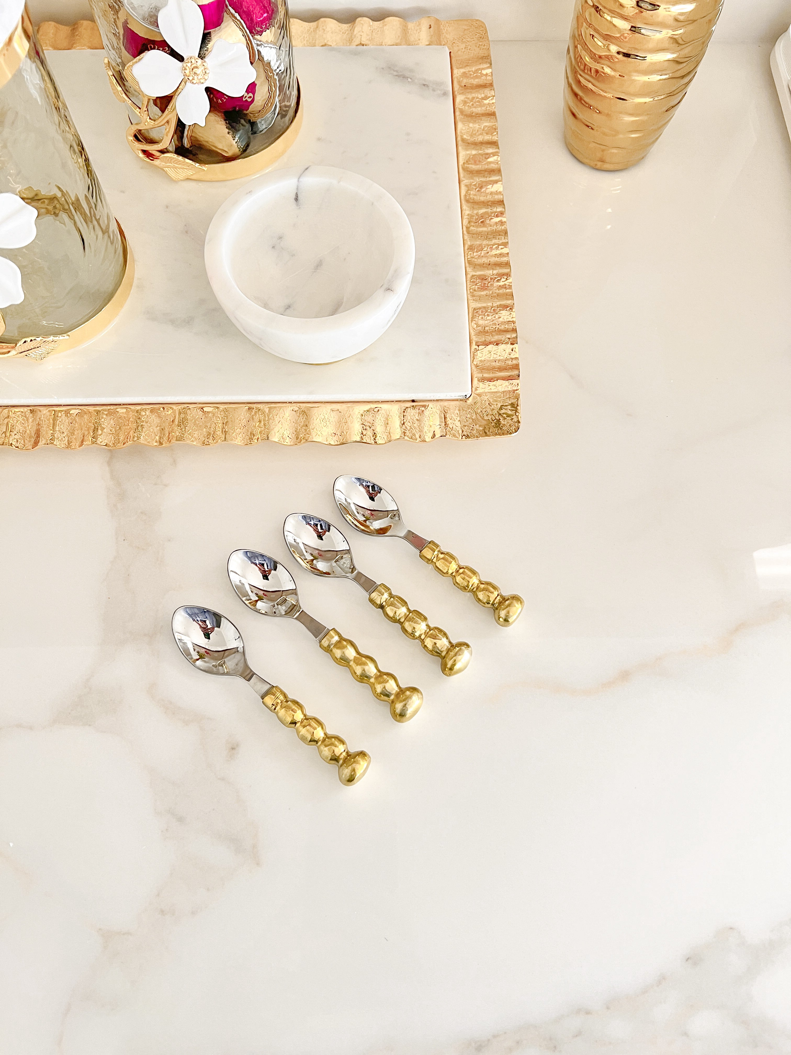 Gold Tea Spoon with Flower Design (Set of 4)