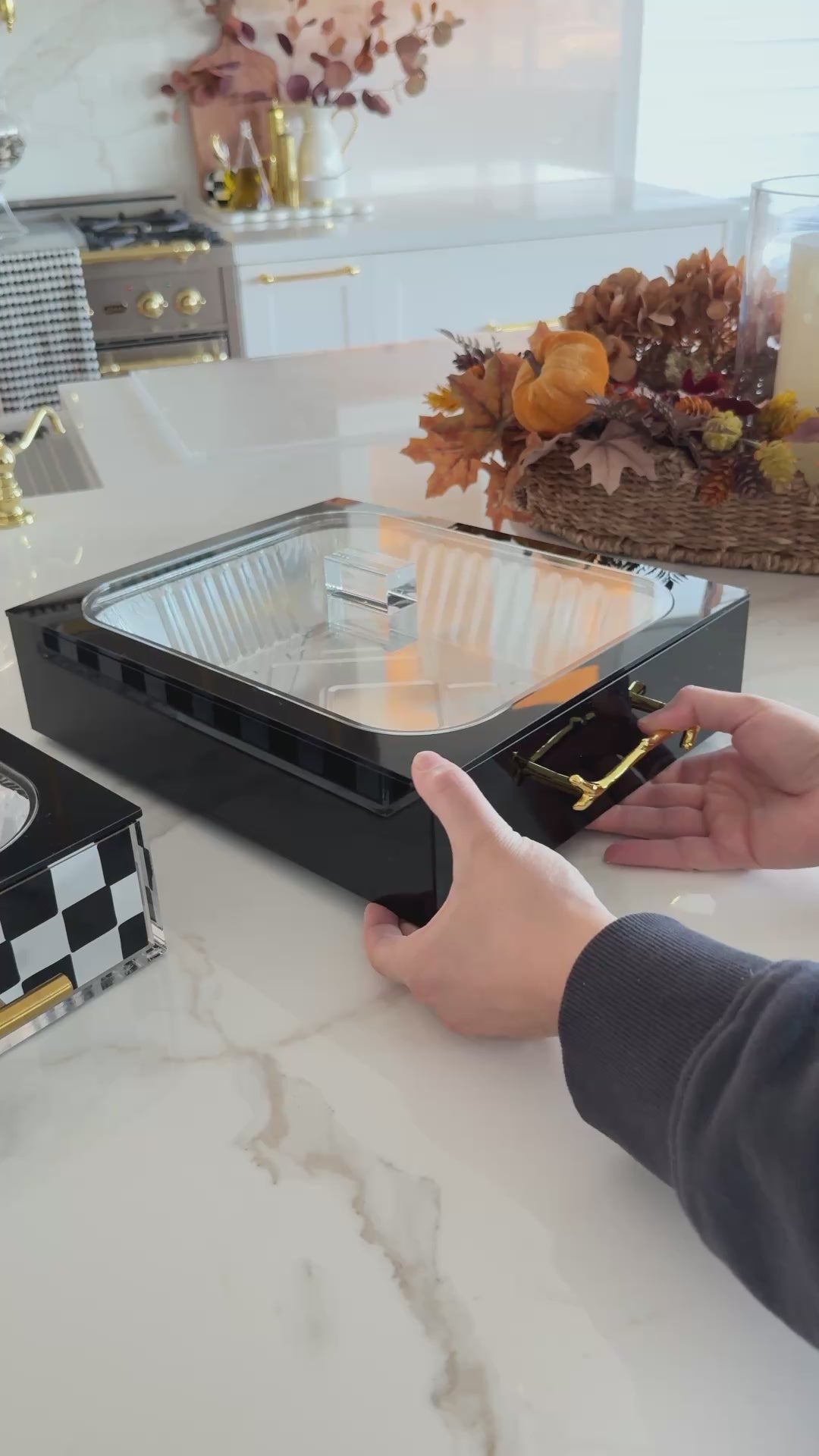 - Includes pan holder + rim cover + clear lid + One Disposable Foil Pan