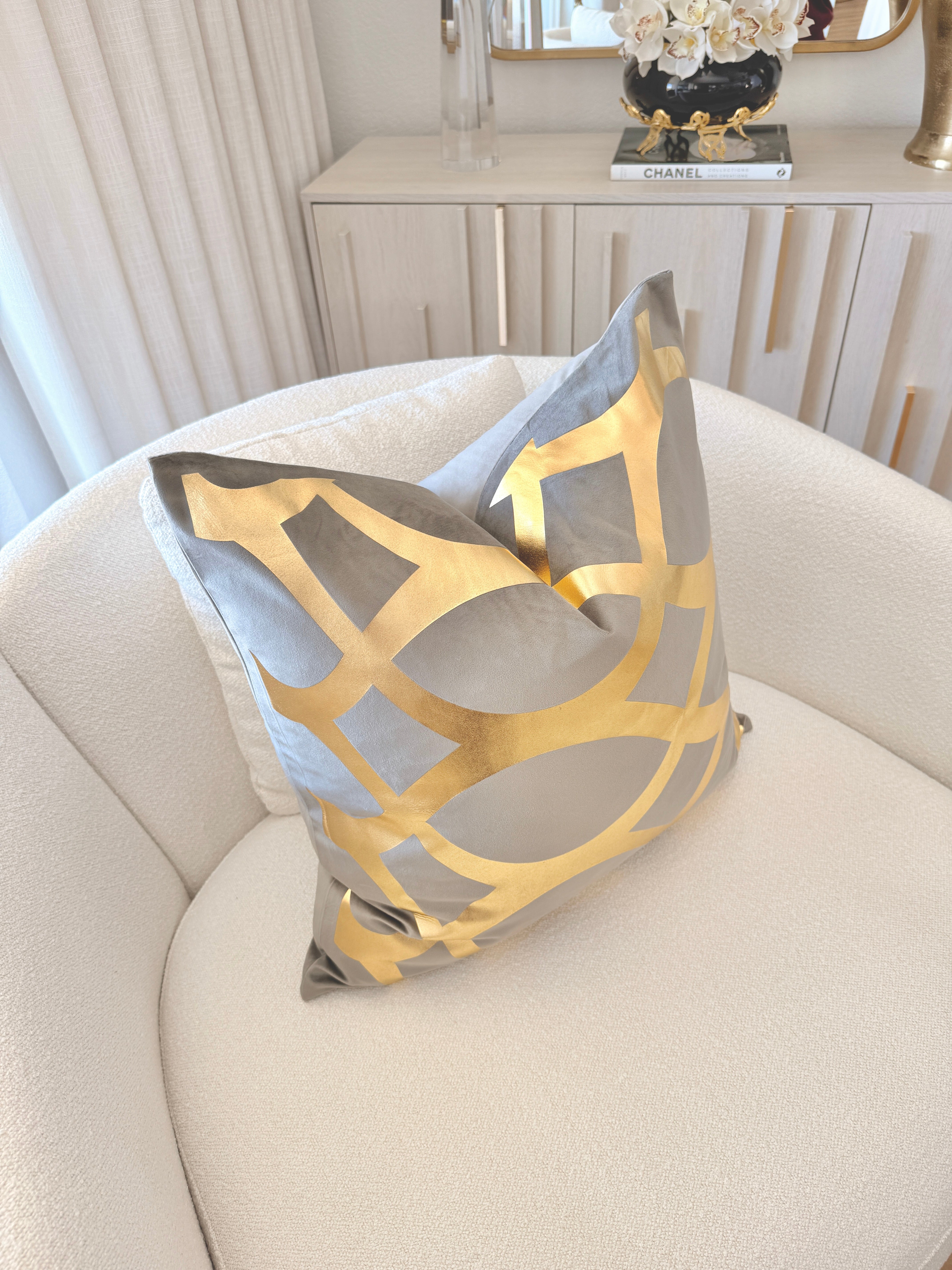 Gray and Gold Foil Wavy Pattern Throw Pillow Cover