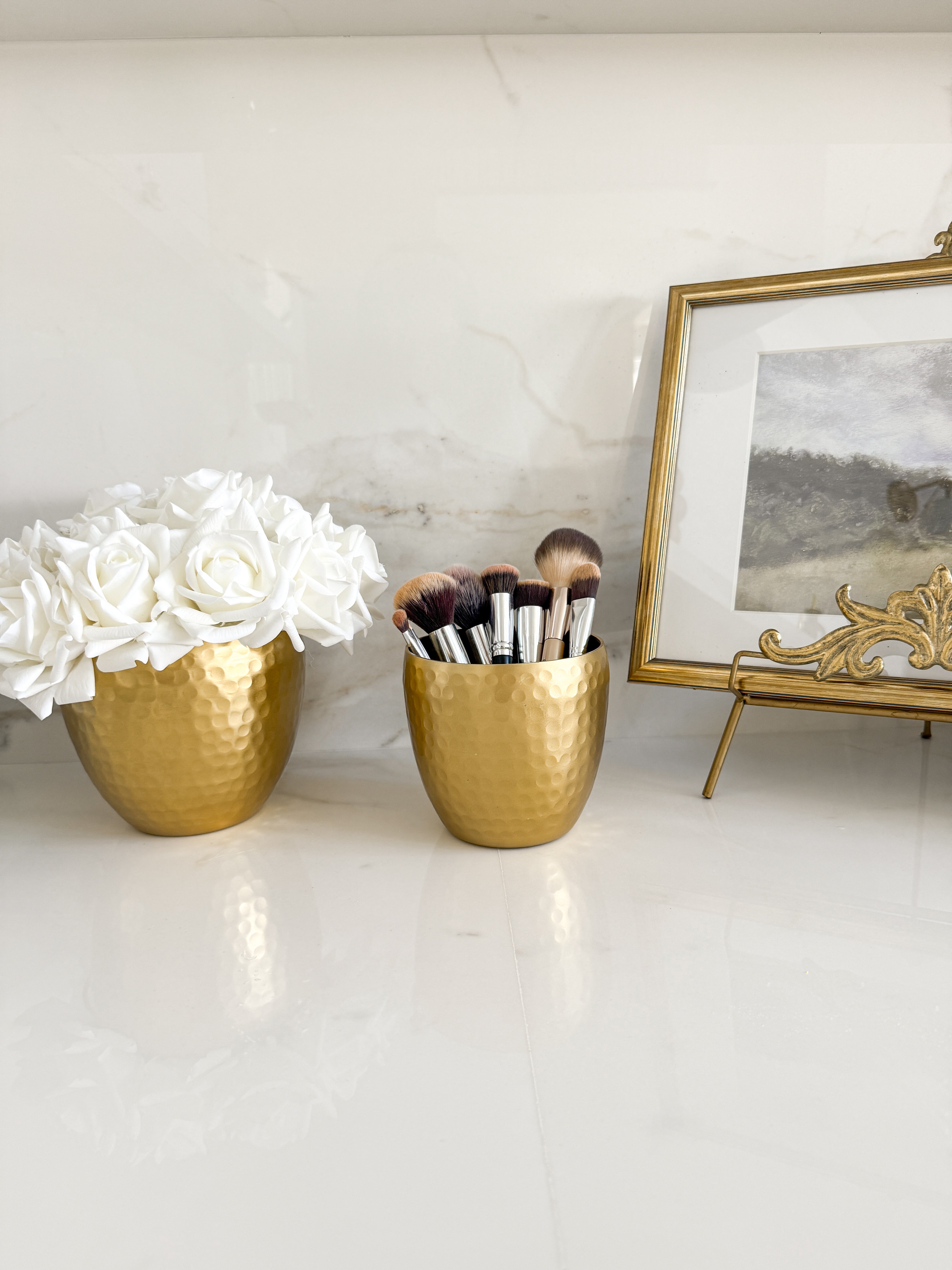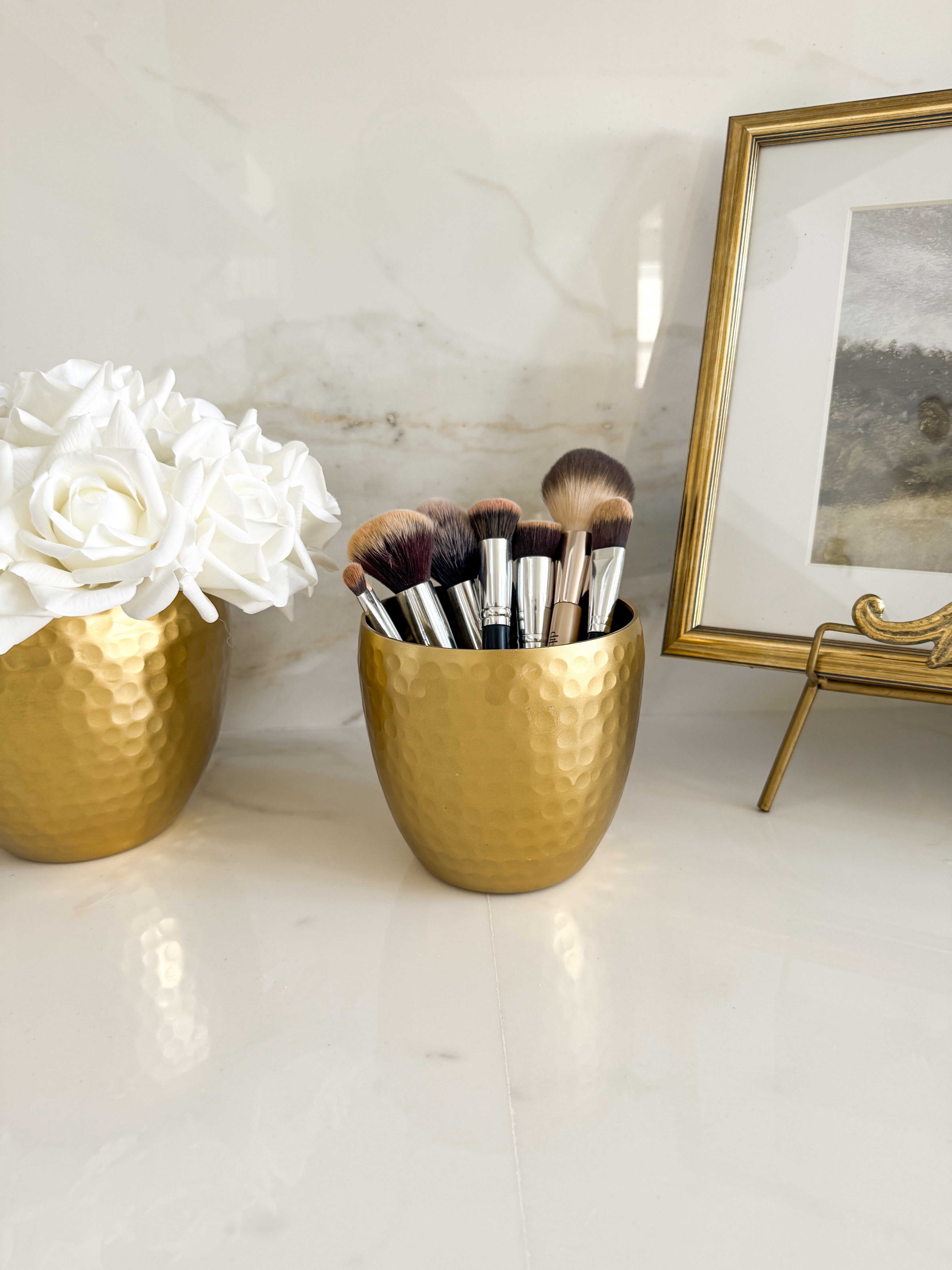 Gold Hammered Makeup Holder (Set of 2)